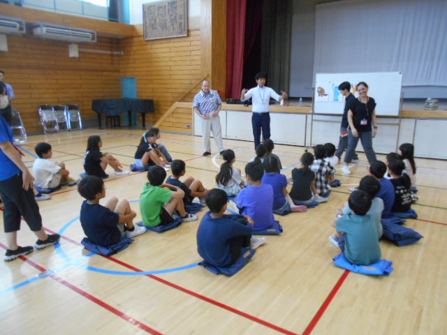 英語の先生が5名いらっしゃって、3年・4年・6年のクラスに入り、授業を行いました。